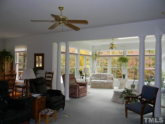 Custom built home on 10 private, wooded acres adjacent to Jordan Lake. Beautiful serene & peaceful views from every window. Spacious, open & bright Kitchen with Skylight & Island * Large Dining Area * Cozy Family Room w/Gas Log Fireplace & Built-In Shelving * Consume nature from inside the Sun Room that is flooded with lots of light & windows * Walk-up floored attic * Screen Porch * Exterior buildings for lawn equipment or hobbies * EZ access to Raleigh, Durham, RTP, Chapel Hill & all lake activities.