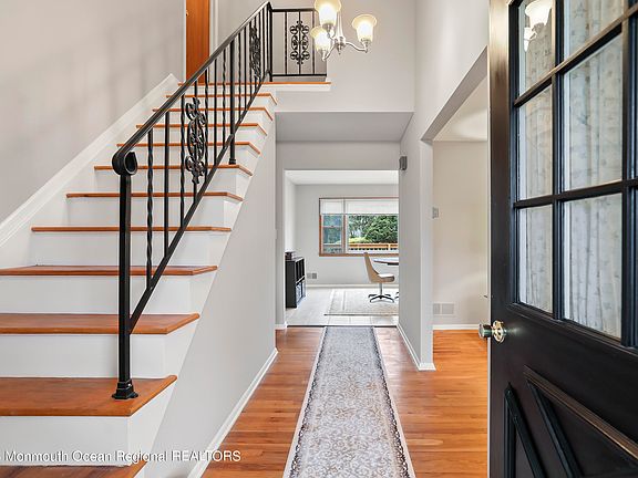 Welcome to this 4 bed, 3 full bath, well-maintained home on beautiful Shady Lane in Whittier Oaks. Upon entry find a bright 2-story foyer complete with fresh paint which runs through your main living areas. Moving into the spacious living room find the gorgeous full wall marble fireplace with custom built-in cabinetry along with new windows and blinds. The newly updated kitchen features quartz countertops, white cabinetry, stainless steel appliances including the refrigerator, newer microwave and a range/oven powered by natural gas. The kitchen conveniently opens to the back yard through the Anderson sliding door and to the dining room space complete with NEW tiled flooring. Downstairs find 3 bedrooms, including one master suite with a remodeled bathroom and two others with fresh paint. Upstairs, find the extra large, grand master suite featuring new thermal windows and a remodeled bathroom. Finally, enjoy a finished basement featuring recessed lighting and built-in cabinets and closets. Storage is at a prime with ample space in the expansive basement cove along with 2 stand up attic spaces on the 2nd floor. Additional bonuses include a mudroom/ laundry room with separate entrance to the backyard, hardwood flooring through the living room, hallways and all bedrooms, NEWer roof and gutters, NEW hot water heater, NEW Anderson storm door and NEW blinds throughout. Outside, in the fenced backyard enjoy a 43-ft deck overlooking the 30 thousand gallon Contemporary "L" inground pool with a solar cover, along with a cedar storage shed. Thoughtful landscaping for privacy, along with an inground sprinkler system further enhance your outdoor living. Finally, LOCATION is everything! Situated down the tree-lined street sits Applegate Elementary and Whittier Oaks park. Plus, Trader Joes, Wegmans, Lake Topanemus, the Monmouth County Library, Downtown Freehold and Opatut Park are within minutes. Being on the East side of Freehold easily access route 9 or route 18 for commuting ease. This is one you have to see!