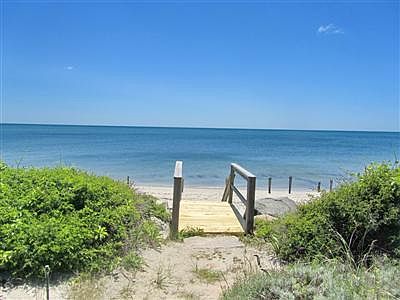 Private sandy beach on Nantucket Sound!! Promenade on a spectacular stretch of white sandy beach, or sit on your patio and enjoy the tranquility of the rolling seas. 3 bedroom wood shingle ranch sitting high and dry with a protected sea wall features oceanfront master bedroom with private bath, guest suite with private bath, sun filled cathedral living room and formal dining area overlooking the ocean. 2 car garage. Great expansion possibility with the full poured concrete basement. Seller to install new title V septic system for 4 bedrooms prior to closing. This home has been owned and lovingly cared for by the original family. Once you arrive it will be hard to leave.