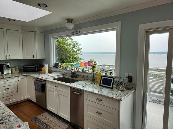 Available for the month of August SPECTACULAR custom home with sweeping water views and large green lawn just steps from Sandy Point beach. This beautiful Colonial includes four bedrooms, three full baths, and two half baths. Superior floor plan for comfortable family living and entertaining. Main floor includes formal dining room, spacious family room, sunken living room, large eat in kitchen with attached mudroom/laundry area and lav. Primary bedroom on main floor, attached large walk in closets, bathroom, and gorgeous office/den with gas fireplace. Second laundry with lav adjoining primary bedroom. Wake up to a sunrise every morning! Second floor has three bedrooms, bath, and cedar closet. Plenty of storage with three attics. Lower level has three car garages. Super wonderful neighborhood!