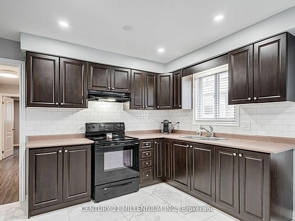 Total Pkg w/Legal 1 bdrm bsmt apartment** This renovated all brick raised bungalow Backs onto a park, perfect for first time buyers looking to rent the bsmt help w/ the mortgage, savy investor rent upper/lower units for approx $4400/m+ & accommodates Lrg families. 3car parking + garage. The interior has been renovated w/ high end finished including 24x24 foyer & kitchen tiles, refinished staircases &railings, new doors, trim, baseboards, hardware & more! The spacious LR/DR feat pot lights, crown moulding & w/o to private front balcony. The kitchen feat espresso cabinets, bck splsh, bonus pantry & additional breakfast area. 4pc modern bathroom w/ lrg vanity. King sz mstr bdrm w/ dbl closet & 2 more bdrms. Shared finished laundry rm btw. Sep ground level entrance to Bsmt apt w/ A/B ground windows t. XL U shaped kitchen w/ breakfast bar, O/C to full sz LR/DR combo & brick fireplace. Queen sz bdrm w/ A/G window. Exterior has concrete staircase & walkway from front to backyard.