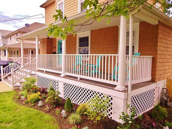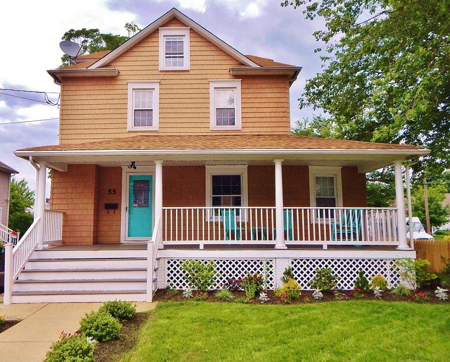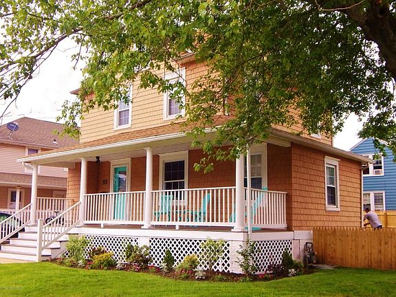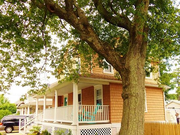 This 4B/2B home has many upgrades, yet retains its colonial charm. 3rd floor was recently finished to make this a 4 bed home. 1st floor is living area w/large kitchen, maple cabinets, island, newer appliances. Open to the DR-LR. The office/playroom is off the Liv Rm. The hall off the kitchen has a full bath, back door to a raised deck, and an extra room that can be used as pantry, mudroom, laundry. Relax on the huge 30x8 covered front porch shaded by a gorgeous tree. 2nd floor has 3BR (1 w/ upper level deck). Beautifully refinished hardwood floors on 1st floor. New hardwood on 2nd. Both bathrooms completely refinished. Newly fenced backyard. Landscaped. Private driveway. 2 zone a/c. New HW heater. Full dry basement. Close to sparkling beach, boardwalk, Pier Village, restaurants, train/bus