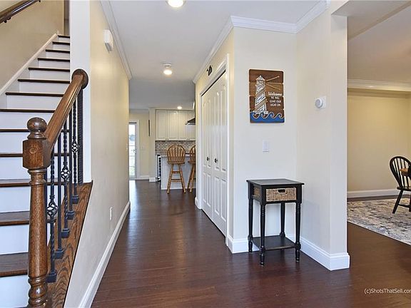 Stunning 2017 Colonial located in highly sought after Bristol Ferry Landing! Greeted by a 2 story foyer, you will immediately notice the modern layout and space desired for todays' entertaining and living. Open floor plan features hardwoods throughout, Front to back Living Space with Fireplace, Large Dining Room with Tray Ceiling and Gorgeous Kitchen with Farmers' Sink, Granite Center Island & Stainless Appliances. Outdoor entertainment can be found with Sliders to Patio with Firepit and oversized yard. The attention to detail to continues upstairs with custom iron & wood staircase, and a generous landing greeting the Master Suite. Opening the double doors you will love the natural light, custom window treatments, tray ceiling and walk in closet. Large master bath with double vanity, and oversized shower. Two additional bedrooms and full bath complete the picture and come right from a designer magazine. Extensive landscaping with evergreens recently added. High Efficency On Demand Gas Heat/Hot Water with Central Air. This one checks all the must haves!