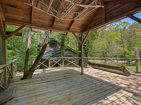 Welcome to Snowbird Lane, located in the charmingly quaint community of Cattail Creek. This picturesque property sits high atop the hill overlooking the creek. Ascend a natural stone paved stairwell, ala Tolkien story, up to the creek cottage entrance. Exterior is clad with rough hewn timber, recently soft-washed, and a walk-out wooden deck with built in seating overlooking the bubbly creek heard from Mountain Farm bridge! A cabin style cottage, while only a bit more than 1100 square feet, there are two private bedrooms with en-suite bath, and a large open shared space with kitchen and living area beneath a vaulted ceiling. This home would be a great vacation spot and/or rental, away from the hustle and bustle. With an abundance of outdoor activities a short hike away, like fishing, tubing, or enjoying the view of the creek! 15 minutes to town of Burnsville. 1 hour to Asheville. Deed restricted with a low road maintenance fee annually. Cute as a button!