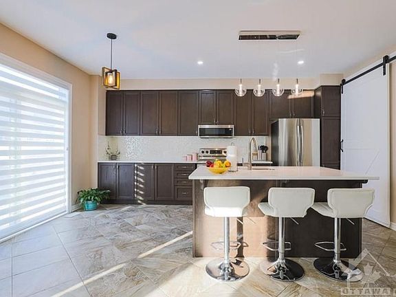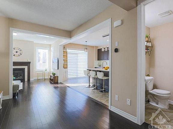 Beautiful upgraded 3-bedroom home in sought after Emerald Meadows Kanata! 4 public and 5 Catholic schools serve this home, Street transit stop less than a 2 min walk away, and a short drive to restaurants, Walmart, DND Headquarters, NCC trail and all amenities. Easy 416/417 access. This property features 9 ft ceilings on both floors, hardwood on main floor, stairs and upper hallway, gourmet kitchen is an entertainer's dream, lots of windows. Upstairs you'll find the master retreat with a spa-like ensuite, 2 generous sized bedrooms, main bath and the laundry room. You will fall in love with this professional finished basement with wiring for home theatre system, Office, gym, kids play zone as many as you want. No smoking. Pet(s) conditional. Early occupy preferred. Copyright Ottawa Real Estate Board (OREB). All rights reserved. Information is deemed reliable but not guaranteed.