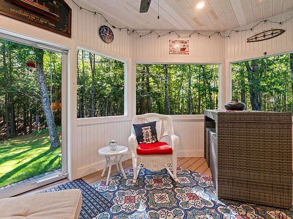 Step inside to an inviting open-concept living area anchored by a cozy gas fireplace, perfect for gatherings or quiet evenings at home. The chef's kitchen is complete with quartz countertops and a center island, allowing the cook to interact and enjoy guests while preparing delicious meals! The spacious living space flows seamlessly to a charming screened porch and a private stone patio, ideal for enjoying serene privacy along with Maine's beautiful seasons. This home boasts abundant natural light throughout, with windows dressed with light curtains and motorized blinds.