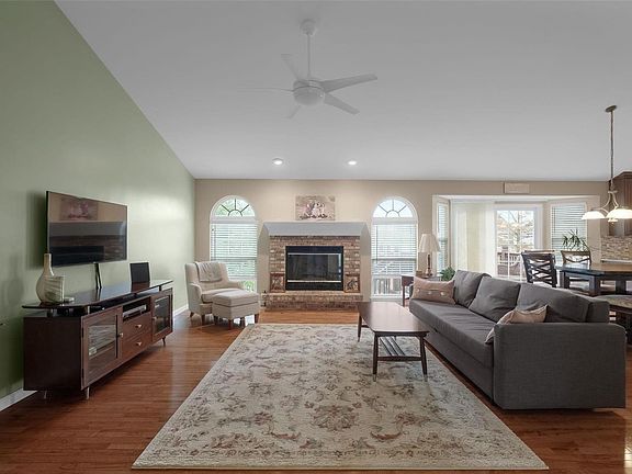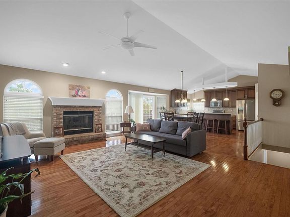 Look no further! Gorgeous open floor plan ranch, with gleaming hardwood floors, and vaulted ceilings in the Francis Howell School District. This home features 3 bedrooms, 2.5 baths, updated kitchen, 2 gas fireplaces, main floor laundry and a partially finished walk out basement. Beautiful kitchen with quartz countertops, stainless steel appliances, 42' cabinets, backsplash, breakfast bar and breakfast room. Off the breakfast room are doors that lead to a deck to enjoy outside! The great room features a gas fireplace. Bathroom in hallway has an updated vanity. Master bedroom suite is large, with separate shower and tub and walk in closet. Walk out basement features new carpet, gas fireplace, bar and large recreation area. Lots of storage space and a patio outside the sliding glass doors. So much room for entertaining! New HVAC and AC in July 2020. Don't miss out on this wonderful home located on a quiet cul de sac street!