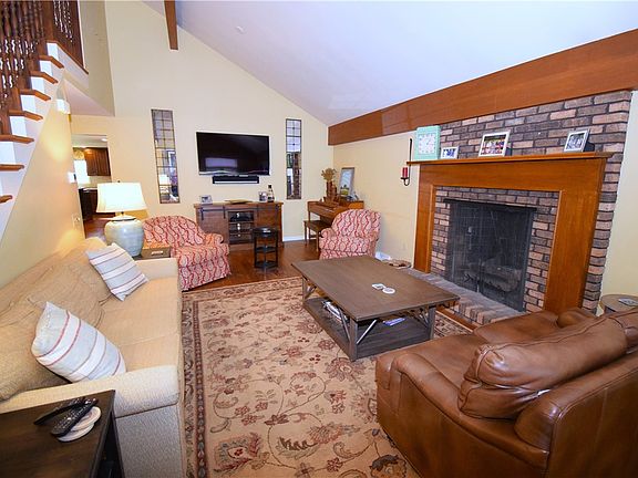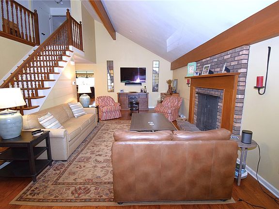This beautifully updated home w/ amazing addition offers so much space inside & out! Situated on a level lot in the convenient Holiday Hills plan w/ small stream, putting green, shed & ample parking. You'll love the curb appeal, tasteful landscaping & covered entry. The spacious living room features a gas fireplace & cathedral ceiling w/ wood beam accents. The amazing gourmet kitchen boasts ample cabinets w/ built-ins, quartz counters, ceramic tile backsplash, 6 burner gas stove, double oven w/ warming drawer, microwave, oversized refrigerator & center island w/ additional built in refrigerator/freezer, 2 beverage centers, prep sink & seating. The dining room is open to the kitchen, great for entertaining. 1st floor laundry, 1/2 bath & 1st floor en suite master is a plus. A 2nd en suite master, 2 additional bedrooms & 3rd full bath are on the 2nd floor. The lower level offers a spacious game room, 1/2 bath, 2 car garage & 1 car garage. A huge pvc deck offers great outdoor living space!