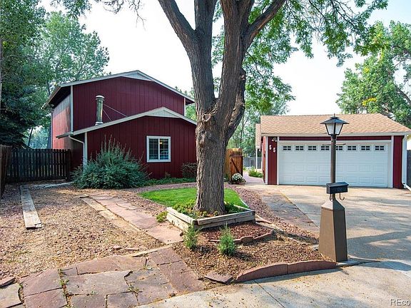 Available 9/1. This 4 bedroom, 2 bath open floor plan home is perfect for a family with a green thumb. Flagstone patio with covered large propane grill on a .25 acre lot with peach and cherry trees, raised beds, raspberries, trampoline, fire ring, and plenty of space for games and company. The home itself has a bright kitchen, new hickory hardwood floors in the living room, new carpet in bedrooms upstairs, and new paint. There are three bedrooms and one full bathroom upstairs, each bedroom has a very large closet. The fourth bedroom or bonus room is on the main level with another full bathroom. The dining area has french doors that open up to the deck and fully fenced back yard. This home is on a corner lot in a quiet cul de sac, so there is privacy from other neighbors. The detached studio is a perfect home office, music space, guest room, library, or really any hobby/hosting space you have. There is a sleeping loft, a large built-in bookshelf, new floors, and good natural light. It connects to a large gear and storage shed leading to the garage. In addition there is a garden shed in the yard with more storage space. All furniture in the house will also be available to rent. Great location with a fence that backs up to the Oligarchy Slough bike path and walking distance to Centennial Park (with frisbee golf course) and Centennial Lanes. One mile from downtown shops and restaurants in Longmont. The YMCA is two blocks away. Washer and Dryer. Sprinkler system. Large parking space in driveway with two car garage and additional parking space for RV/School Bus/Sprinter Van. Nextlight high speed fiber optic internet installed and included, all other utilities the tenant will be responsible for. No pets allowed, may consider a small family dog with a deposit. Tenant responsible for yard upkeep with quarterly assistance for seasonal changes (will be discussed further). Security deposit and last month's rent due at signing. Equal opportunity housing. All applicants agree to credit and background checks.