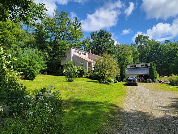 Passive solar home with three levels of living space. The 1st level has an office and a craft room, with storage. The second floor has a library room, dining area, kitchen and Livingroom. This floor has a wrap around deck which takes in the kitchen area and Livingroom area. The 3rd floor has 2 large bedrooms, full bath, washer, dryer and walk in closet. The 3rd floor is open to the 2nd floor and offers a larger open area feeling. The property is on 14 acres with gardens, 2 car garage with storage over the 1st floor and a very scenic setting.