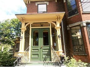 Stately,historic,brick bldg with 4 apartments in excellent condition and a GROSS INCOME of $51,300/yr! A .36ac,landscaped yard + 6 deeded parking spaces add to the value! Meticulously maintained w/many upgrades throughout: new kitchens in all units,new Low E glass storm windows,replacement piping in Pex or copper, shiny HW floors, stone & brick walkways,stone wall garden w/perennials. Apt 1 w/1600 sf,granite counters & handsome cherry cabinets, spacious living rm w/bay window,high ceilings, wd flrs, period moldings & a marble fireplace; master bedroom suite has private bath, soak tub & W/D! Almost ballroom size,the family room has a coffered ceiling,wood floors & a small, charming screened porch! Up the elegant,dark wood staircase to the 2nd floor you will find 2 apts with 700sf and 834sf. Cozy and bright 3rd floor "garret" apt has 1432sf and is home to a tenant who has lived in the bldg for 11 yrs. PERFECT "OWNER OCCUPY" BUILDING.