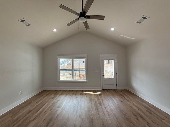 This house has all the extras! Nice corner lot with great curb appeal! Inside you will love the open concept living and kitchen with an amazing walk in pantry! Quartz countertops in the kitchen, stylish backsplash and large island. Luxury vinyl flooring throughout. Primary bedroom with vaulted ceiling. You won't even mind doing laundry in this bright laundry room with lots of cabinets and a countertop for folding clothes. The closets have custom shelving with shelving that can be moved to fit your needs. You won't find another home like it.