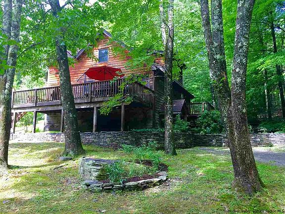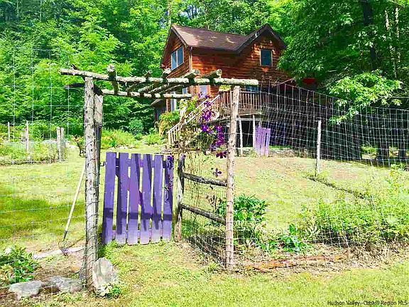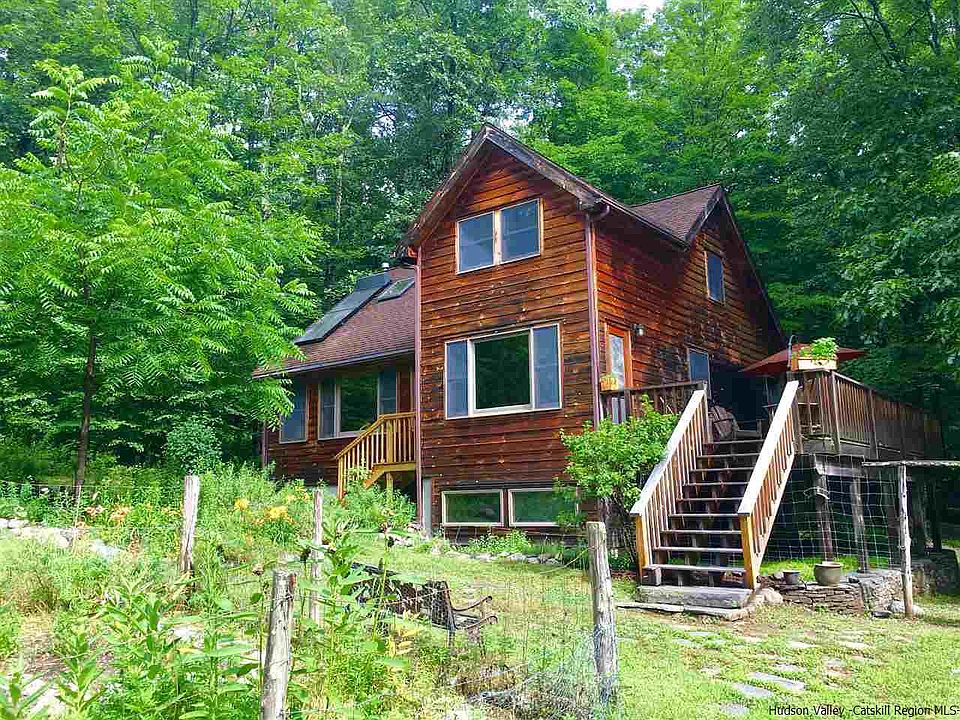 This wonderfully secluded 21-acre property sits at the end of a private road and offers woods, farmland, barn, a pond and a thoughtfully designed and meticulously constructed contemporary cabin in the woods. Natural materials blur the line between indoors and out, with rich woods and artisanal stonework incorporated into the architecture. Two wood stoves, one in the living room and the other in the walkout basement, in addition to the passive solar orientation, will keep heating costs low, and offer the opportunity to minimize use of the propane heating system. All rooms are light and bright, and the floor plan easily lends itself to entertaining, with a large living room and comfortable eat-in kitchen with custom cherry cabinetry and Mexican terra-cotta floor tiles. There's plenty of storage, including a pantry and mudroom area, as well as a second sitting/office area on the second floor. Apart from the efficient, turnkey house, there's real magic in the land, which has always been maintained organically, and offers a multitude of opportunities to grow crops and raise animals on a small scale. The barn is 16x20 with electric service, shed is 11x16 and chicken coop is 8x12. Parts of the property are deer fenced and there are mature fruit trees and berry bushes.