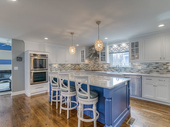 Beautifully redone with a great open floor plan this 5 bedroom, 2.5 home is just blocks to town & train & rests on over a third of an acre on a lovely quiet cul-de-sac with many updates! A newer white kitchen with breakfast bar and top of line stainless steel appliances opens to a dining area with wet bar and large family room with cathedral ceilings and gas fireplace with doors to the deck and patio and large fenced in yard perfect for play, relaxing or gardening. A living room and garage complete the first floor. Upstairs there are 5 bedrooms and 2 full baths. The master suite is large with walk in closet and large bath with stall shower, tub and two sinks. This is a home you will not want to miss.