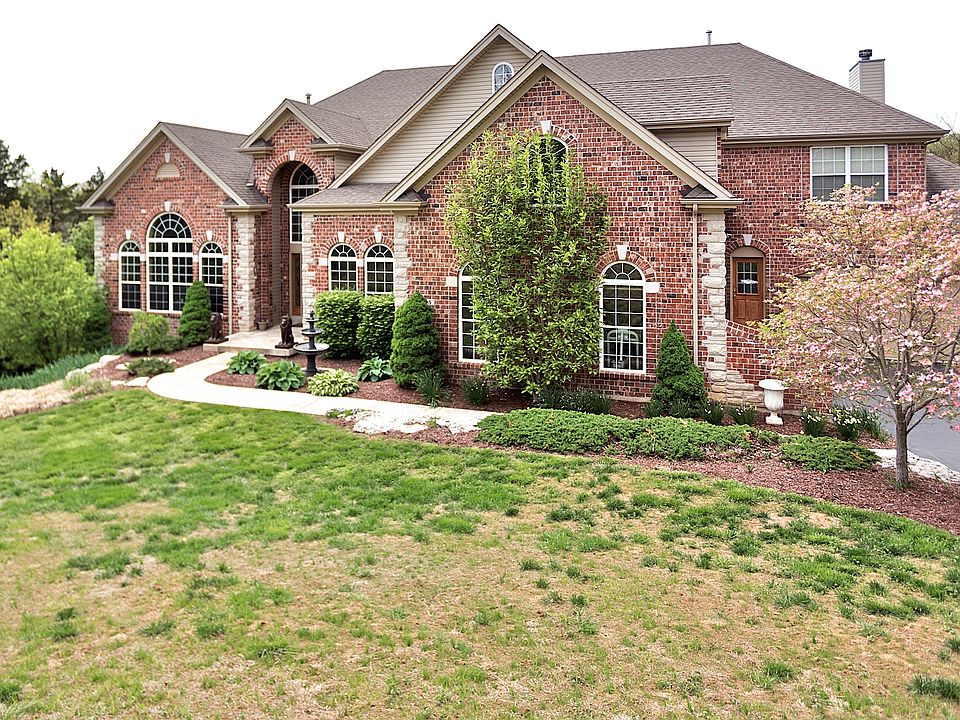 Exquisite 1 1/2 story executive home on over 3 acres approximately 1 mile off Highway 44 & 109! Architecture and millwork throughout with grand two-story marble tiled entry and beautiful turned staircase. Fabulous spacious floor plan compliments this custom interior. The Kitchen features 42" cherry cabinets, granite counter tops and a double wet bar open to the great room. There is a second staircase leading to the upstairs loft family room, 3 bedrooms with 2 full bathrooms and a large bonus room. Master bedroom suite with sitting room, luxury bath and walk in closet. Stunning 2-story great room enters to the breakfast room and hearth room with additional stone and brick fireplace. Finished lower level with rec room, fitness room, bedroom and full bath. Walks out to a beautiful patio, pool, hot tub and sand volley ball court with scenic backdrop of wooded privacy to complete this perfect package!
