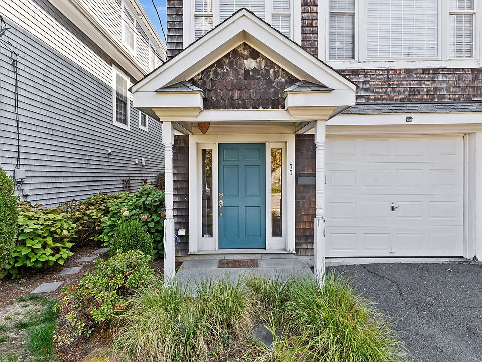 Tucked away in the heart of Fairfield Center you have found 55 Thorpe St. This tri-level townhouse is deceivingly spacious. Entry way provides access from the Tandem two car garage, long hall way with ample storage leading you to the rear bonus Den/office with walk out to private green space. As you walk up the staircase to the main level you are greeted with an amazing open concept space and 9ft ceilings. Living room with French doors leading to a private deck, and gas fireplace. Eat-in- Kitchen with double wall ovens and ample counter space open to the dining room. Half bath on main level. Hardwood floors throughout. Head upstairs to the 3rd level. Primary Bedroom with en-suite and 2 closets, 2nd and 3rd bedroom, full hall bath with tub. 2nd floor is carpeted (no HW under carpets). Pull down attic for additional storage. Low flood insurance. As-Is Sale. Professional photography coming.