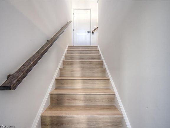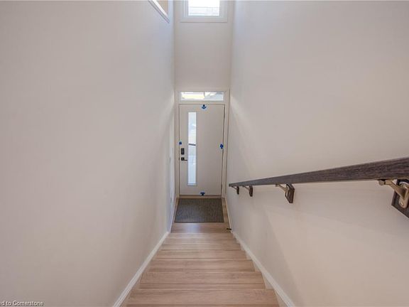 PICTURESQUE PARIS! Discover modern farmhouse elegance in this stunning 3-storey townhouse. Enjoy carpet-free living and an abundance of natural light throughout. The sleek kitchen boasts quartz countertops, a white tile backsplash, and a cozy breakfast nook, seamlessly connecting to a bright living room with pot lights and a main floor powder room. Upstairs, you'll find 3 spacious bedrooms, including a primary suite with a 3pc ensuite and a stylish 4pc main bath. The lower level features a versatile den, ideal for a home office, along with garage access. Notable highlights include high ceilings, vinyl flooring, quartz countertops, a keypad entry, a sliding glass shower in the ensuite, and a video doorbell for added convenience. Nestled in a charming small-town setting, you’ll be surrounded by scenic river views and a vibrant community of artisanal shops and local eateries. With easy access to shopping centers, schools, parks, and quick routes to Highways 403 and 401, this home combines the best of tranquil living with modern convenience.