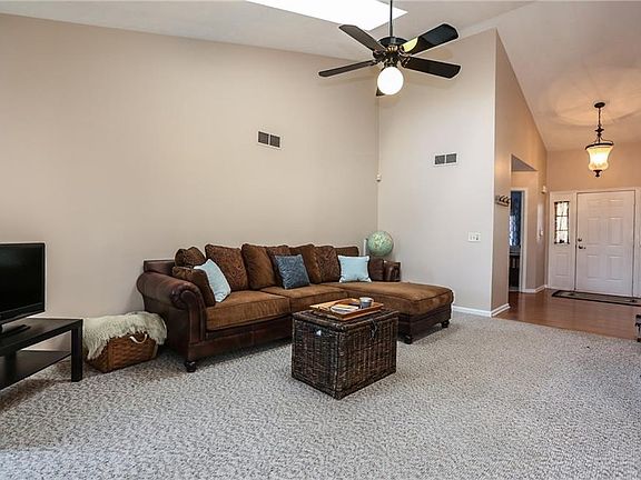 Adorable Ranch-Style Living w/OPEN FLOOR PLAN has so much to offer! Neutral Palette & Fresh Paintthroughout! A Large, White Eat-in Kitchen w/Breakfast Bar awaits you! NATURAL LIGHT aboundsw/multiple SKYLIGHTS in oversized Great Room! A wonderful WOOD-BURNING F/P w/NEW MANTLE enhances the ambiance! The Dining Room offers Sliding Glass Doors which open onto the FABULOUS NEW DECK! Flat, Level Backyard w/Common Area Green Space awaits you! ELECTRIC PET FENCE SYSTEM w/Collar conveys to new owner! Master Bathroom w/walk-in Custom Tiled Shower and Soaking Tub has been upgraded to perfection! First Floor Laundry! The Partially Finished Full Basement gives you LOADS of STORAGE PLUS a perfect space for a Rec Room, Home Theater or Gym! Open Sunday 6/3 from 12:30-2pm!