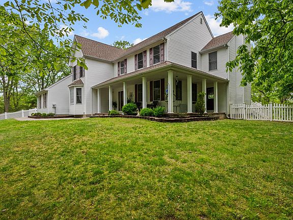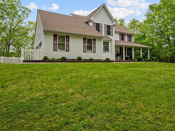 This beautiful custom Colonial style home on over 2 private acres offers 4 bedrooms, 2 full bathrooms, and 1 half bathroom adding to 3,200 sq ft. With a side entry oversized 2-car garage, this home is perfect for a growing family or anyone looking for space and comfort. Step inside to find a kitchen complete with a walk-in pantry, island, two year old stainless steel appliances, and tons of cabinet space. The downstairs boasts newly refinished hardwood floors, Anderson windows, sliding glass doors, and a Heatilator brand stove surrounded by built-in shelving. Upstairs, you'll find three oversized bedrooms along with an oversized primary bedroom that features a full attached bathroom with a soaker tub and walk-in closet. Step outside to your private backyard that includes a large deck complete with views galore! The front and backyard features lawn sprinklers, a long driveway, and a wrap-around porch. The basement is a full walkout basement with 9 foot ceilings and already roughed in for an additional bathroom, offering endless possibilities for future renovations. Other features include first floor laundry, two attic spaces, invisible dog fence, new roof installed in 2020 with transferable lifetime warranty, and gutter guards. Don't miss out on the opportunity to make this house your home. Contact us today to schedule a tour and experience the charm and comfort this home has to offer!