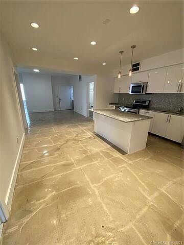 Completely renovated apartment offering luxury and modern living. Open floor-plan kitchen, living and dining area. Kitchen lined with granite countertops and backsplash, custom built cabinets, built-in island, and brand new stainless steel appliances ( Oven, Dishwasher, Microwave & Fridge). 3 Full bathrooms offering shower with slate tile and premium finishes. Sleek concrete floors, high ceilings, recessed lighting and 6 private rooms including one master on suite. Rooms can be configured to use as 6 Bedrooms. Off-street parking available. Washer and Dryer included. Ideal location with I-91 and 95 1 block away, .2 miles from Yale School of Management, Yale Dept. of Economics and International Studies. Only .1 mile from the New Haven Museum and .8 miles from the Yale Art Gallery.