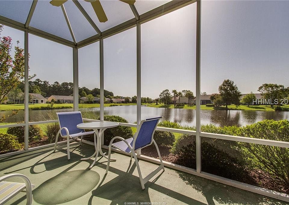 Dreaming of living on the water? Beautiful Heather Model with one of the best water views in Sun City. Quiet, cul-de-sac location. Home features 2BR + Den, 2BA, foyer, eat-in-kitchen, separate dining area, and sunroom with electric fireplace. Enjoy the outdoors, nature and views on your large screened in patio. Master has additional water views plus walk-in closet, large shower and double vanities in the bath. Den, garage walls and epoxy flooring recently painted 7/19. Quick closing possible. Just the perfect home to enjoy all that Sun City has to offer!