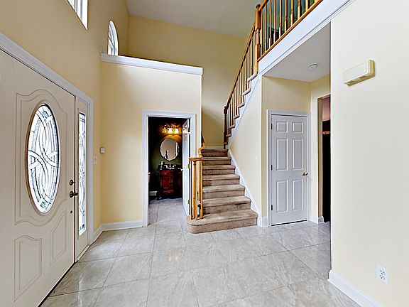 Brickfront Colonial located in Vineyards!! Home is situated on a wooded acre lot. This two story entry home leads to the kitchen which has 42'' cabinets and a center island, quartz countertops with tile backsplash, family room with gas fireplace, large dining room and formal living room. Master bedroom has two large closets. Master bathroom has shower, double sinks and jetted tub. Laundry room with front loading washer and dryer is upstairs. Full stainless steel appliance package including refrigerator, dishwasher, stove and microwave. There is also the extra refrigerator and separate freezer in the garage included. Full finished walkout basement can be possible in-law suite.