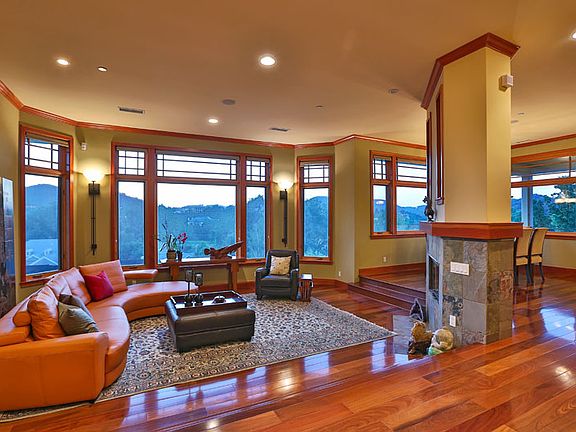 Feel like you're on vacation every day in this Lake Sherwood modern craftsman beauty! Located behind the guard gates of Ventura County's most exclusive enclave, this 4600 plus sq. ft. home boasts gorgeous lake, mountain and golf course views. Numerous flex space options in this custom tri-level make at-home living, working and entertaining a joy with a living room (which shares a double sided fireplace with the adjoining dining room), a family room, a breakfast area, 5 bedrooms, 6 en-suite bathrooms, a large office (which could also be used as a 6th bedroom), a media room, and a gym/rec room. High-end Brazilian teak hardwood floors along with custom iron railings flow throughout home. The gourmet chef's kitchen features granite counters, top-of-the-line appliances, fine wood cabinetry and a large center island with prep sink and wine fridge. Relax or entertain outside on one of the many decks or balconies or in the lush backyard featuring a majestic oak tree, fruit trees, a petite vineyard, outdoor fireplace and peaceful waterfall. The 3-car tandem garage offers ample parking and storage along with plentiful additional off-street parking in the motor court and driveway. This entertainer's retreat is conveniently located close to top-rated schools, shopping, entertainment and beaches. Welcome home to 55 Upper Lake!