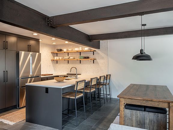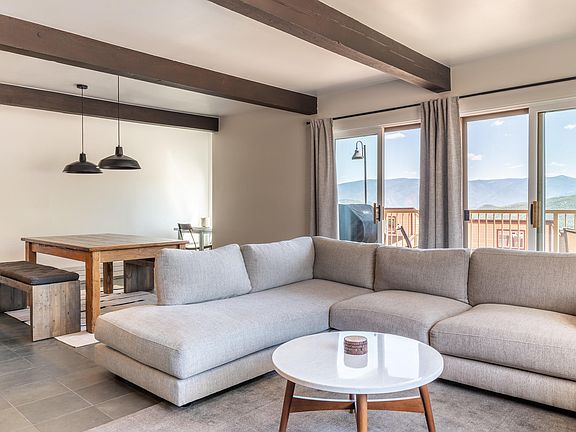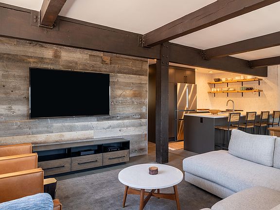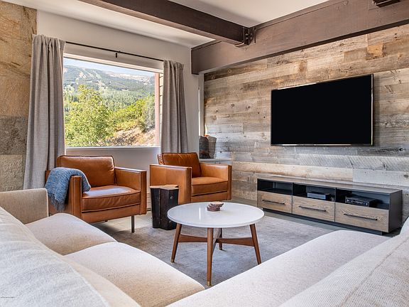 Amazing remodel inside and beautiful views outside at this two-bed Snowmass Mountain condo. Remodeled in 2020 with high-end finishes and additional windows, this 993-square-foot condo is ideal for full time usage or rental income. Brazilian slate floors and sun bleached corral boards reflect a contemporary design accented with rustic elements. Offered furnished, including new high end appliances, beautiful rugs, and luxurious seating. The wood burning fireplace has gorgeous quartz stone surround and the at-home office has a view. This end unit on the upper side has 2 covered parking spaces and a large secure storage area. The complex has pool, hot tub, fitness area, and on-site property management. The paved pathway to grocery store, post office, and skiing is just down the covered sta