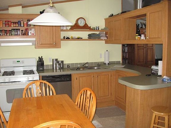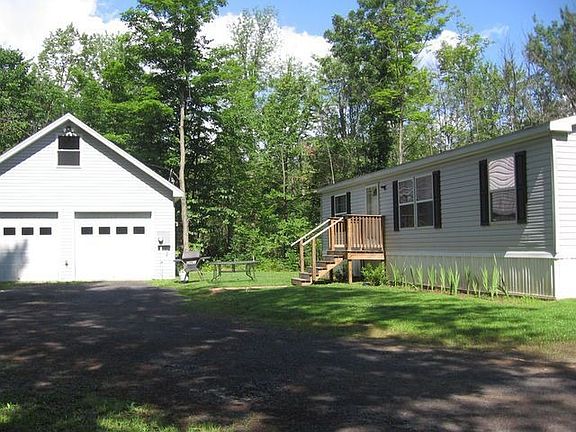 13.46 acre property with oversized garage with attic storage. Manufactured double wide home with open floor plan, wall to wall carpeting, 1st floor laundry, eat-in applianced kitchen with eat-in bar, vaulted ceiling and master with private bath.