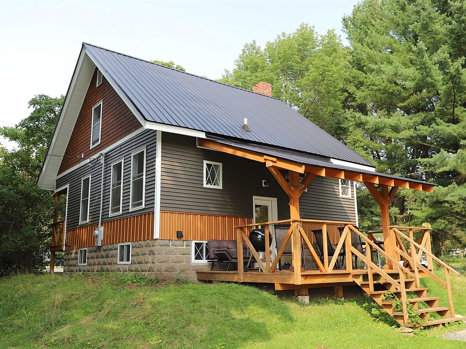 This charming village home has recently undergone many upgrades and improvements. The most obvious is the updated exterior. A new metal roof, vinyl and metal siding, vinyl windows, exterior and interior doors, a new front porch and an added rear covered porch with a view to the spacious .53 acre backyard. The home features 2 bedrooms on the second level and a den/office space on the first level that is large enough if a 3rd bedroom was needed. The updating continues inside with a brand new kitchen featuring stainless steel appliances, flooring, updated electrical and plumbing and so much more. Located on a quieter side street in the village, close to Baxter Park, The Haskell Library, I91 and the Canadian Border crossing. Additional storage available in the unfinished basement and the detached garage. This home is sure to please!