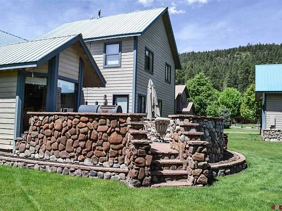 This beautiful 2420 sf, 3 bed room, 2 bath room, 2 car attached garage, and a Hugh 5 car detached garage is Located in one of the most sought out areas in Durango, the Animas Valley! Just 15 min. to Durango. Irrigation water provided though HOA. Water running in ditch behind property and like a stream in the front from the man-made rock outlined ditch. Automatic sprinkler system creates this lush green yard and maturing trees. Covered front porch entrance with rock wall and flagstone top. A Wood burning fireplace (with natural gas pilot light for easy starting) has river rock surround, wood mantle and flagstone bench creates a warm setting in the living room. Vaulted tongue and groove wood ceiling above the living room and kitchen make for a large open feeling. Functional kitchen with seating area light and bright by the full-length glass windows overlooking the back yard with ornamental trees creating privacy for the back yard. Custom made patio off from the kitchen is surrounded by river rock stem wall with flagstone sill and floor is excellent for entertaining and BBQ's. The detached Hugh garage is perfect for storing extra vehicles or recreational toys and yard equipment, or maybe even part for a shop! Valley Meadows neighborhood features a common central park and gazebo area for neighborhood meetings and barbecues. Don't miss your opportunity to live just outside of town in a country setting and with all the conveniences and amenities this area offers. Irrigation water rights owned by HOA and provided to each member.