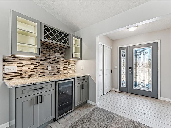 Welcome: quality renovation surrounds you! Open Great room floor plan with Vaulted ceiling. Frank Loyd Wright-styled stained-glass door & side light. Storm door. Tile Entry foyer & stylish dry bar leads to spacious Vaulted Great rm. Breakfast room & Kitchen have engineered wood floors. Kitchen boasts granite counters & black matte hardware. Matched slate-finish appliances:overhead Microwave, Gas stove, Dishwasher & French Dr Refrigerator. Subway tile backsplash. Pantry. Screened porch has Lighted Ceiling fan; composite decking & sun shades. Patio for your BBQ. Primary Suite has barn door to master bath. 3 Full Bathrooms: ALL renovated, matching vanities with drawers. Professionally finished lower level: recessed lighting, ductwork added for improved air flow. LG Laundry rm has bank of cabinets & Refrigerator. Updated interior doors, windows, lighting, plumbing fixtures & baseboards thorough-out the home. Level door handles. Garage insulated & drywalled. Newer Roof. Digital thermostat. Additional Rooms: Sun Room