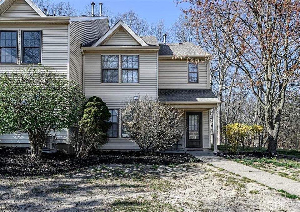 Jackson's sought after 60 Acres Community premieres this lovely 3 Bed 1.5 Bath End-Unit Townhome that is bursting with possibilities! Situated on a quiet cul-de-sac backing to serene wooded views, you're guaranteed peace and privacy all year through! Charming Covered Front Porch and welcoming Foyer give way to a spacious Living rm with neutral plush carpeting and large picture window that illuminates the space. Formal Dining rm holds sliders to your own private Patio for easy outdoor dining. Eat-in-Kitchen offers ample cabinet storage + HW flooring- customize it to your liking! Plenty of natural light all through. Convenient 1/2 Bath and Laundry closet rounds out the interior of this gem. Upstairs, the main updated Full Bath with ceramic tiling, along with 3 generously sized Bedrooms. The Primary Bedroom boasts it's own private bath access, too! NEW ROOF 2022, maintenance free living and plenty of amenities to indulge like Biking and Jogging Trails, the Outdoor Pool, Playground, Tennis + Basketball Courts, Baseball Fields, extra guest parking, the list goes on! Don't wait! This could be the ONE!