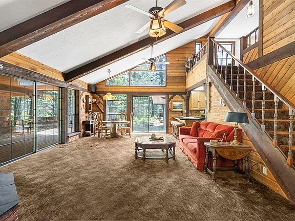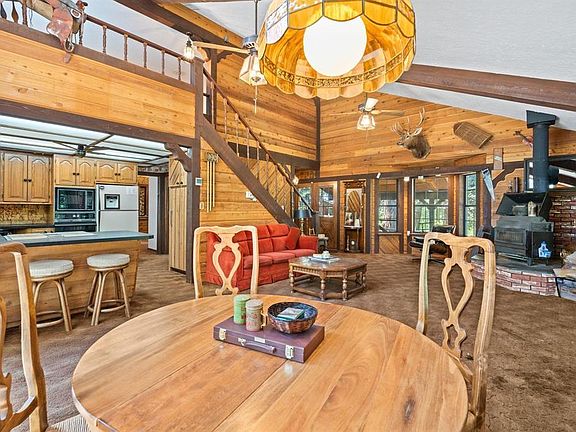 Step back in time in this charming retreat in Forrest Groves Estates, nestled among the pines and steps from the Florida River. This rustic cabin, built in 1983, features two bedrooms and two and a half bathrooms on a third of an acre. The cozy fully-furnished cabin is outfitted with remarkably well-preserved original elements. The main level of the home features a living/dining area with a wood-burning stove, kitchen, laundry room, powder room, and a primary suite with a full bath. Upstairs, a loft bedroom with a full bathroom is accompanied by an additional room that could be used for storage or as an office. A detached two-car garage, central utilities, and a wrap-around deck with river views make this home the perfect mix of convenience and relaxation. Located in a quiet neighborhood with fishing and walking trails nearby, this property is the perfect place to unwind and bask in nature's solitude. Schedule a showing of this retro retreat today!