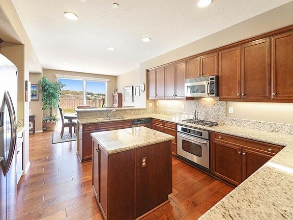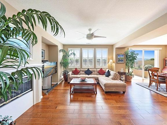 Premium view lot in the popular Verano tract within Talega. This meticulously maintained end unit is spacious, open, light & bright with tasteful & timeless finishes including stunning wood flooring, dark rich cabinetry, plantations shutters & has been repiped with Pex. The spacious interior is nearly 1900 sq ft with 4 bedrooms, 2.5 baths, inside laundry room with cabinets & a 2 car attached garage with direct access, overhead storage racks & tons of cabinets. The warm & inviting living room is centered around a cozy gas fireplace, enjoys views of the hills with an open concept design joining the dining area and impressive gourmet kitchen appointed with beautiful cabinetry, granite countertops, stainless appliances, a center island, breakfast bar & an abundance of storage. The generously sized master bedroom has an ensuite bath with dual vanities, walk in shower stall, jetted soaking tub, his & hers closets with one being a walk in. Oversized sliding doors lead to your tranquil patio adorned with extensive hardscape, a built in planter and sweeping vistas from the canyon to the surrounding hills. This peaceful setting is perfect for relaxation or entertaining. You will appreciate the many Talega community amenities which include several assoc. pools, clubhouses, golf, hiking trails, tennis, sand volleyball, social events, Award Winning K-8 Vista Del Mar school & the Talega Village shopping center. Conveniently located a few miles to the beach, freeway access & Outlet Mall.