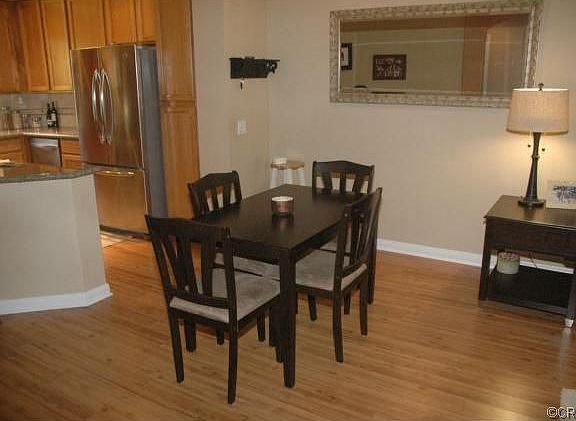 Beautiful upgraded single level condo . Ground level with 2 Bedrooms, 2 Bath and garage. Laminated hardwood floors. Upgraded kitchen with granite counter top and Stainless steel appliance. Upgraded Master bath. Living room with upgraded fireplace. Upgraded baseboards and crown moldings throughout. One car garage and additional assigned parking space. Close to shopping and restaurants.