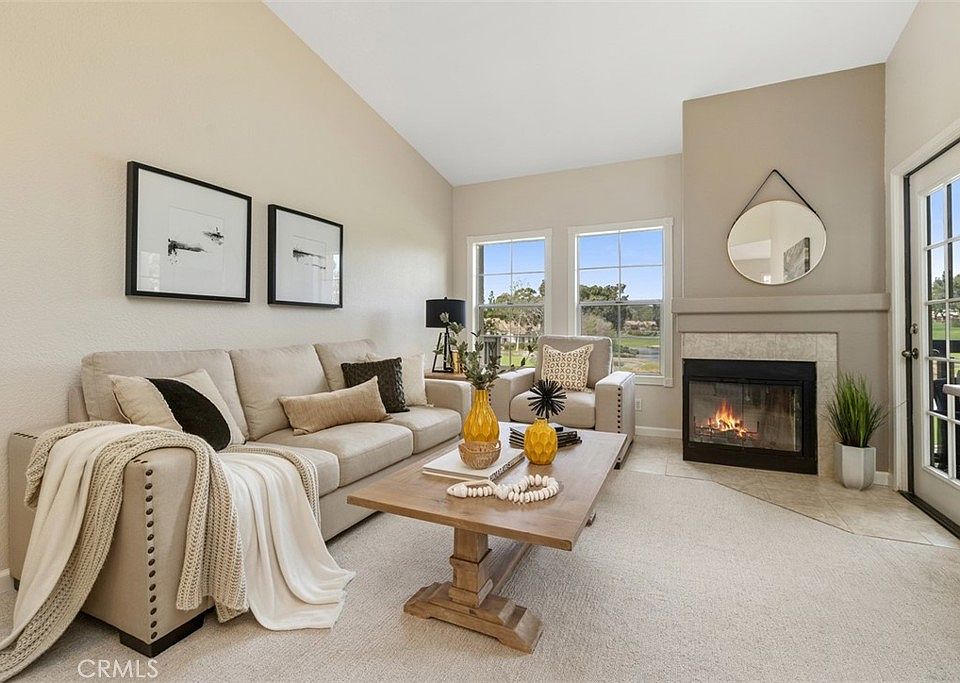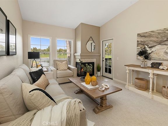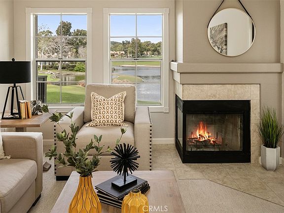 Views! Views! and More Views! Relax and take in the beautiful scenery that includes panoramic golf course, water and tree lined views. This fabulous one bedroom/one bath home offers something for everyone, along with a very private setting and some of the best views in the development. Spacious layout includes: large living room with fireplace, dining area, light and bright kitchen, master bedroom with large closet and full bathroom. This turnkey, very clean home also has new paint and carpet throughout. Enjoy the inviting deck/balcony offering space to sit outside and enjoy the mesmerizing scenery. Enclosed laundry area conveniently located on balcony. There is even an extra deep one car detached garage with ample room for storage located just outside the homes courtyard. The Tierras community also features a community pool, spa, gym and bbq area and is nearby numerous hiking and mountain biking trails. Enjoy numerous RSM SAMLARC amenities as well including privileges to the lake, beach, pools, spas, tennis, clubhouse, pickleball courts, numerous parks, community events and more! Just a short distance to local California Blue Ribbon schools as well as shopping, toll roads and more!