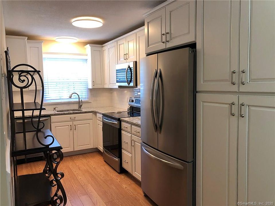 TASTEFULLY REMODELED 1ST FLOOR CONDO IN PRIME LOCATION! OFFERS: Beautiful New Kitchen w/ High End Stainless Steel Appliances, Granite Countertops, Double Sink, Large Pantry w/ Slide Out Drawers, Tiled Back Splash & Dining Area, New Hard Wood Floors, Large Living Room, New Slider to Private Deck/Patio, Leads to Quiet Rear Yard- Nice For Grilling & Relaxing Any Time of The Day! Remodeled Bath & Double Closets in The Large Master Bedroom. Extra Storage in Basement w/ Coin Op Laundry. Prime Location Near Avery Point, Eastern Point Beach, Shennecossett Golf Course, EB & Pfizer! Quaint Condo Association Tucked Away in Neighborhood Setting on Cul De Sac; Only 3 Buildings w/4 Condos Per Unit. Own For Less Than Paying Rent!~