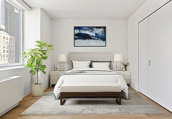 Starting at $6450.00 per month. Bright one bedroom with oversized corner living room windows, open gourmet kitchen with stainless steel appliances, stone countertops, and eating bar, and an in-unit washer/dryer. Apartment also features multiple closets and wood floors throughout. Chelsea Landmark is a collection of sophisticated rental apartments located at the intersection of NoMad, Flatiron, and Chelsea. Luxury services include an on-site attended garage, building-wide Wi-Fi, wall outlets with USB charging ports, 24-hour doorman and concierge service, and an expansive landscaped roof deck with panoramic city views. Our newly renovated Club 3 features a resident lounge, game room with golf simulator and billiards, library, party room, state-of-the-art fitness center with yoga studio, and patio with barbeque grills. Club 3 members can access complimentary fitness classes and signature events as well. Prices and incentives subject to change. Photos and floor plans may be of a representative unit.