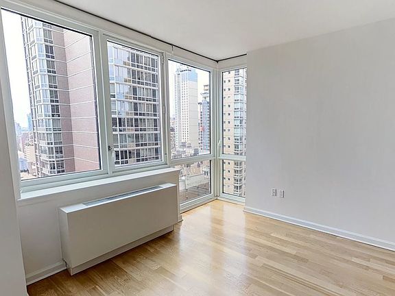 Bright one bedroom with oversized corner living room windows, open gourmet kitchen with stainless steel appliances, stone countertops, and eating bar, and an in-unit washer/dryer. Apartment also features multiple closets and wood floors throughout. Chelsea Landmark is a collection of sophisticated rental apartments located at the intersection of NoMad, Flatiron, and Chelsea. Luxury services include an on-site attended garage, building-wide Wi-Fi, wall outlets with USB charging ports, 24-hour doorman and concierge service, and an expansive landscaped roof deck with panoramic city views. Our newly renovated Club 3 features a resident lounge, game room with golf simulator and billiards, library, party room, state-of-the-art fitness center with yoga studio, and patio with barbeque grills. Club 3 members can access complimentary fitness classes and signature events as well. Prices and incentives subject to change. Photos and floor plans may be of a representative unit.
