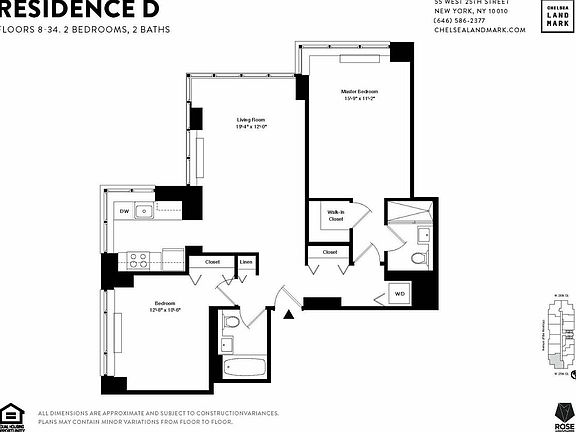 This corner 2BR/2BA has split bedrooms and a windowed kitchen with stainless steel appliances and stone counter tops. Apartment also contains an in-unit washer/dryer and a primary bedroom suite with a walk-in closet, and private bath with oversized shower. Chelsea Landmark is a collection of sophisticated rental apartments located at the intersection of NoMad, Flatiron, and Chelsea. Luxury services include an on-site attended garage, building-wide Wi-Fi, wall outlets with USB charging ports, 24-hour doorman and concierge service, and an expansive landscaped roof deck with panoramic city views. Our newly renovated Club 3 features a resident lounge, game room with golf simulator and billiards, library, party room, state-of-the-art fitness center with yoga studio, and patio with barbeque grills. Club 3 members can access complimentary fitness classes and signature events as well. Prices and incentives subject to change. Photos and floor plans may be of a representative unit.