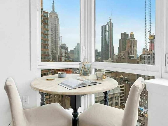 Sun-drenched studio with eastern skyline views, great closet space and a washer and dryer in unit. Chelsea Landmark is a collection of sophisticated rental apartments located at the intersection of NoMad, Flatiron, and Chelsea. Luxury services include an on-site attended garage, building-wide Wi-Fi, wall outlets with USB charging ports, 24-hour doorman and concierge service, and an expansive landscaped roof deck with panoramic city views. Our newly renovated Club 3 features a resident lounge, game room with golf simulator and billiards, library, party room, state-of-the-art fitness center with yoga studio, and patio with barbeque grills. Club 3 members can access complimentary fitness classes and signature events as well. Prices and incentives subject to change. Photos and floor plans may be of a representative unit.