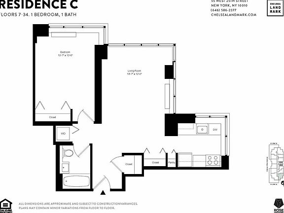 This corner 1 BEDROOM 1 BATHROOM has 12 foot ceilings, views to the south and east, floor-to-ceiling windows in the living room, and a separate windowed kitchen. The apartment also includes a washer and dryer and walk-in closet. The building offers luxury services such as an on-site attended garage, wall outlets with USB charging ports, 24-hour doorman and concierge service, and an expansive landscaped roof deck with panoramic city views. This building is located at the intersection of NoMad, Flatiron, and Chelsea providing residents with endless places to eat and a great chance to enjoy the culture of New York City. Schedule a private tour today.