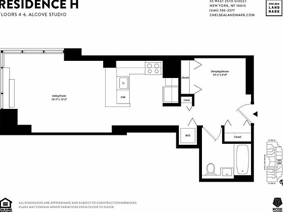 Spacious alcove studio with oversized corner windows and a distinct sleeping area with closet. This great apartment also features an in-unit washer dryer and an open L-shaped kitchen with stainless steel appliances, stone counter tops and an eating bar. Chelsea Landmark is a collection of sophisticated rental apartments located at the intersection of NoMad, Flatiron, and Chelsea. Luxury services include an on-site attended garage, building-wide Wi-Fi, wall outlets with USB charging ports, 24-hour doorman and concierge service, and an expansive landscaped roof deck with panoramic city views. Our newly renovated Club 3 features a resident lounge, game room with golf simulator and billiards, library, party room, state-of-the-art fitness center with yoga studio, and patio with barbeque grills. Club 3 members can access complimentary fitness classes and signature events as well. Prices and incentives subject to change. Photos and floor plans may be of a representative unit.