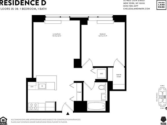 This 1BR/1BA has oversized windows featuring incredible views of the Hudson River. Apartment also contains a washer/dryer, walk in closet, gourmet kitchen with stainless steel appliances, stone countertops, and an eating bar, and wood floors thorughout. Chelsea Landmark is a collection of sophisticated rental apartments located at the intersection of NoMad, Flatiron, and Chelsea. Luxury services include an on-site attended garage, building-wide Wi-Fi, wall outlets with USB charging ports, 24-hour doorman and concierge service, and an expansive landscaped roof deck with panoramic city views. Our newly renovated Club 3 features a resident lounge, game room with golf simulator and billiards, library, party room, state-of-the-art fitness center with yoga studio, and patio with barbeque grills. Club 3 members can access complimentary fitness classes and signature events as well. Prices and incentives subject to change. Photos and floor plans may be of a representative unit.