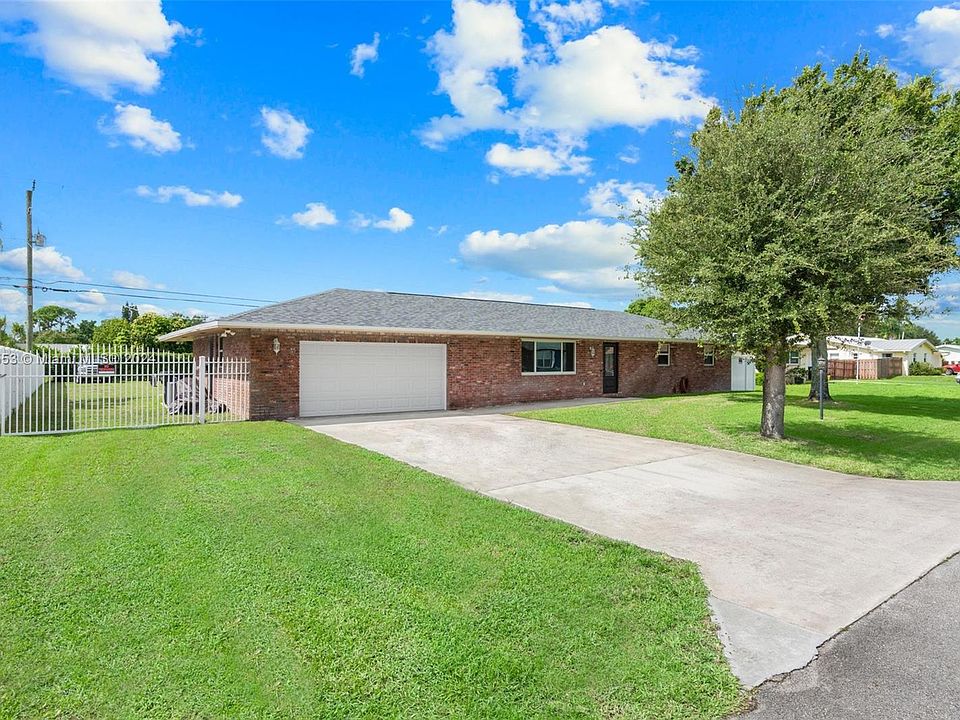 This exquisite 3-bedroom, 2-bathroom home is nestled on a generous 0.4-acre plot in the highly coveted Florida Gardens neighborhood. Boasting almost 1800 sqft. of living space, this turnkey gem features a brand-new roof installed in 2023, along with all impact windows and doors, a new AC, water heater, renovated bathrooms, and an electrical panel with a dedicated generator hookup. Step outside to discover the beautifully fenced-in backyard, offering ample space for a luxurious pool. With no HOA restrictions, you'll appreciate the convenience of a large access gate for RVs, boats, and more, complete with water and electrical hookups. Enjoy easy access to major retail centers, top-rated restaurants, and seamless connections to major roadways and the turnpike.