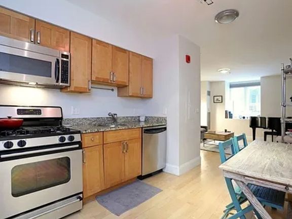 A one-bedroom, one-bathroom duplex, unit 108, is available for rent Sept. 1 at 45 West Broadway in South Boston, MA. The unit is located in the Saints Peter & Paul Church Condos, situated on the border of the Seaport District and South End. It features a unique layout with living/dining space upstairs and a bedroom and bathroom downstairs, along with a designated parking space and in-unit laundry. Stainless steel appliances (gas range, dishwasher, microwave, refrigerator), granite countertops, large bathroom with jacuzzi tub, central air, in-unit laundry, maple hardwood floors. The unit is conveniently located near the Broadway "T" stop (Red Line) and offers access to the South End, Back Bay, highways, Logan Airport, and South Station. Walking distance to the Seaport, Lincoln Tavern, Bar Volpe, Loco Taqueria, Starbucks, Amrheins, Capo, Foodie Market, Rondos, The Essex Boston, Moonshine 152, Fox and the Knife, Reunion Cafe to name a few. Heat, water, building & grounds maintenance, snow & trash removal, one off street parking space all included with rent. The lease is a one year term. No smoking. Parking is no extra fee, designated behind the building, off street, one space. Tenant is responsible for electricity and gas. Landlord pays heat and water. Tenant is responsible for trash/recycle removal to building trash/recycle receptacles. Outside and building common area maintenance provided by building management. One pet only allowed.