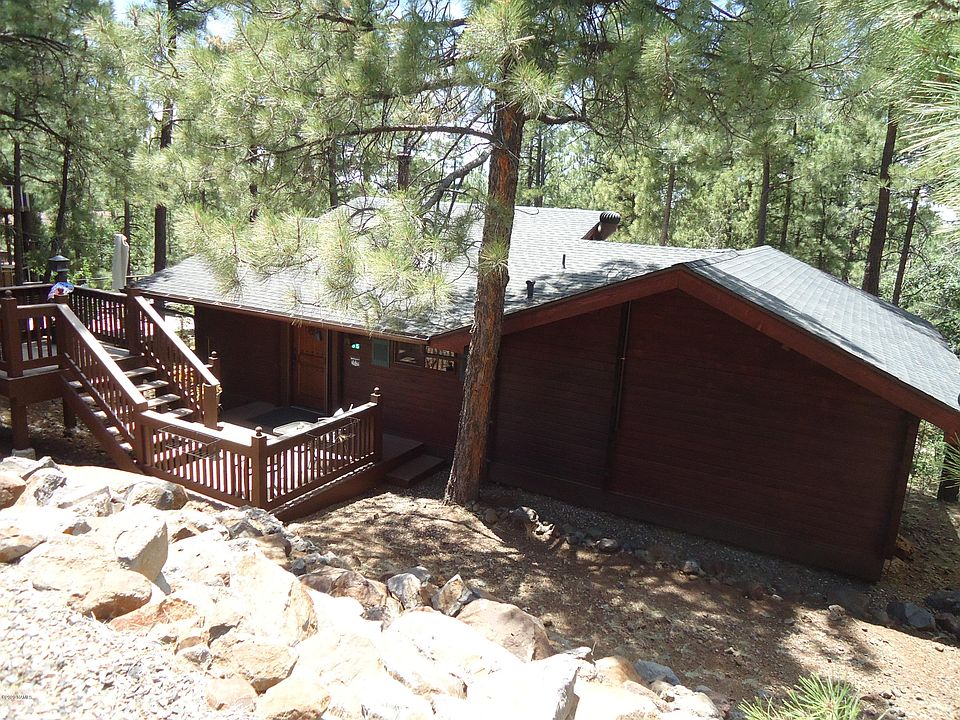 Very special, CEDAR LOG cabin located at the end of a Cul-de-sac on a 8,400 sq. ft., heavily treed, view lot. Open & spacious great room plus updated kitchen & Bath. Enjoy the outdoors on the beautiful deck . Cabin is meticulously maintained and the perfect get-away!