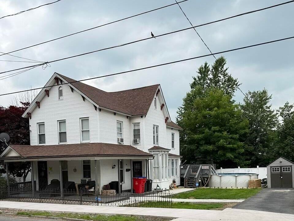 Welcome Home to this charming well cared for property. See all the new improvements below. From the relaxing front porch to the spacious floor plan, you will love this home. Newly painted interior gives it a fresh modern feel. Large rooms will open up a lot of possibilities. Large living room, dining room, kitchen, den/office, half bath and a laundry/pantry room complete the 1st floor. Second floor offers 4 bedrooms and a full bath. A driveway/parking pad offers easy access to the home. How about an above ground swimming pool with a deck to relax on this summer! Need storage outside for tools etc., thats included also. NEW FURNACE 2022, NEW WATER HEATER 2022, NEW ROOF 2021,NEW CHIMNEY LINER 2022.