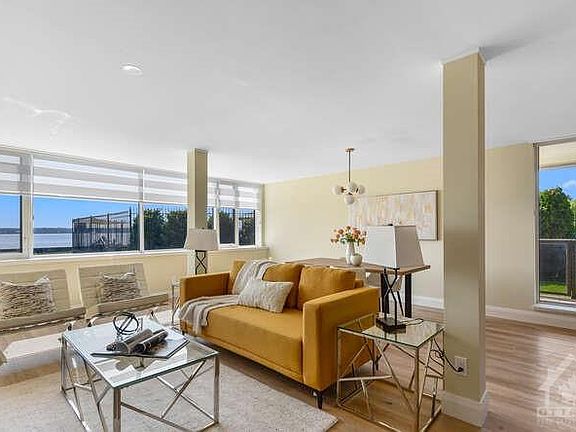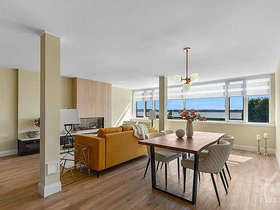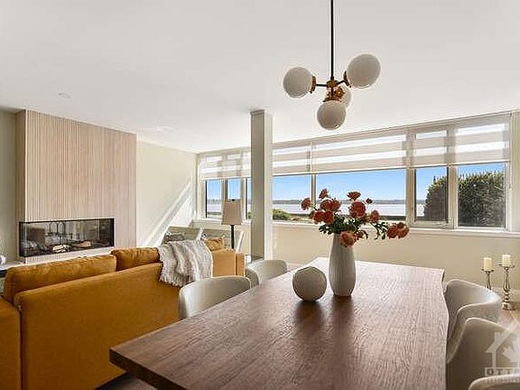 A breathtaking transformation of one of the largest suites (1770 plus sq. ft.) at The Executive has come available. Completely redesigned and executed in a contemporary open-concept style by Kendel-Dezoete Designs, a Brockville premium firm. This southwest corner suite offers the feel of a bungalow surrounded by manicured gardens and pool just outside two verandas. Luxurious waterfront resort-style living with stunning views of the St Lawrence will captivate you and your guests. Watch ocean-going ships, private yachts and huge cruise ships a mere stone’s throw away from panoramic windows. Gorgeous kitchen with quartz counters, induction cooktop range, microwave drawer and hidden details to discover. Huge primary bedroom with new ensuite and walk-in closet plus two other bedrooms and new bath. Walking and bike trails, Farmer’s Market, Tunnel Bay Marina, shops and restaurants on King…what more could you ask!